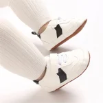 Keep tiny feet comfortable and stylish with these breathable leather sneakers for newborns and toddlers. Designed with soft, flexible soles, they support natural foot movement while providing gentle protection. Lightweight and easy to slip on, these flats are perfect for early walkers, everyday wear, or special outings. Durable, baby-safe, and super cute, they combine comfort and style for your little one’s first steps.