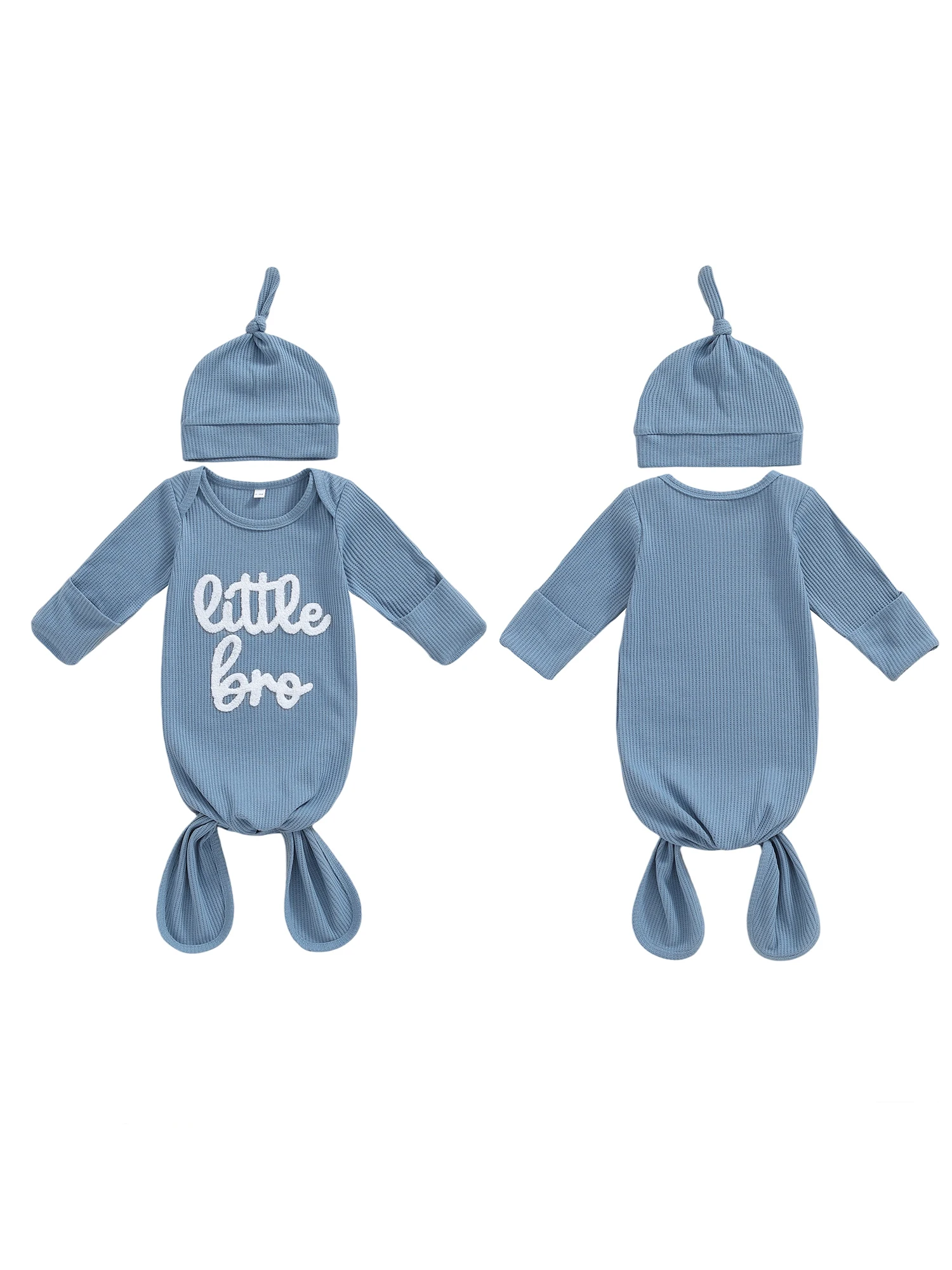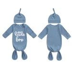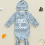 Dress your baby boy in cozy, personalized style with this striped knotted gown and hat set. Made from soft, breathable fabric, the long sleeves keep little ones warm and comfortable, while the knotted design makes diaper changes easy. Embroidered initials add a special, customized touch, making this set perfect for newborn photos, gifts, or everyday wear. Gentle on delicate skin and irresistibly cute, it’s a must-have for your baby’s wardrobe.
