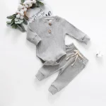 Dress your newborn in cozy style with this unisex 2-piece clothes set, perfect for spring and autumn. Featuring a long-sleeve bodysuit and matching bottoms, it’s made from soft, breathable fabric that’s gentle on delicate skin. Easy to wear and change, this set keeps your little one comfortable while looking adorable for everyday wear or outings.