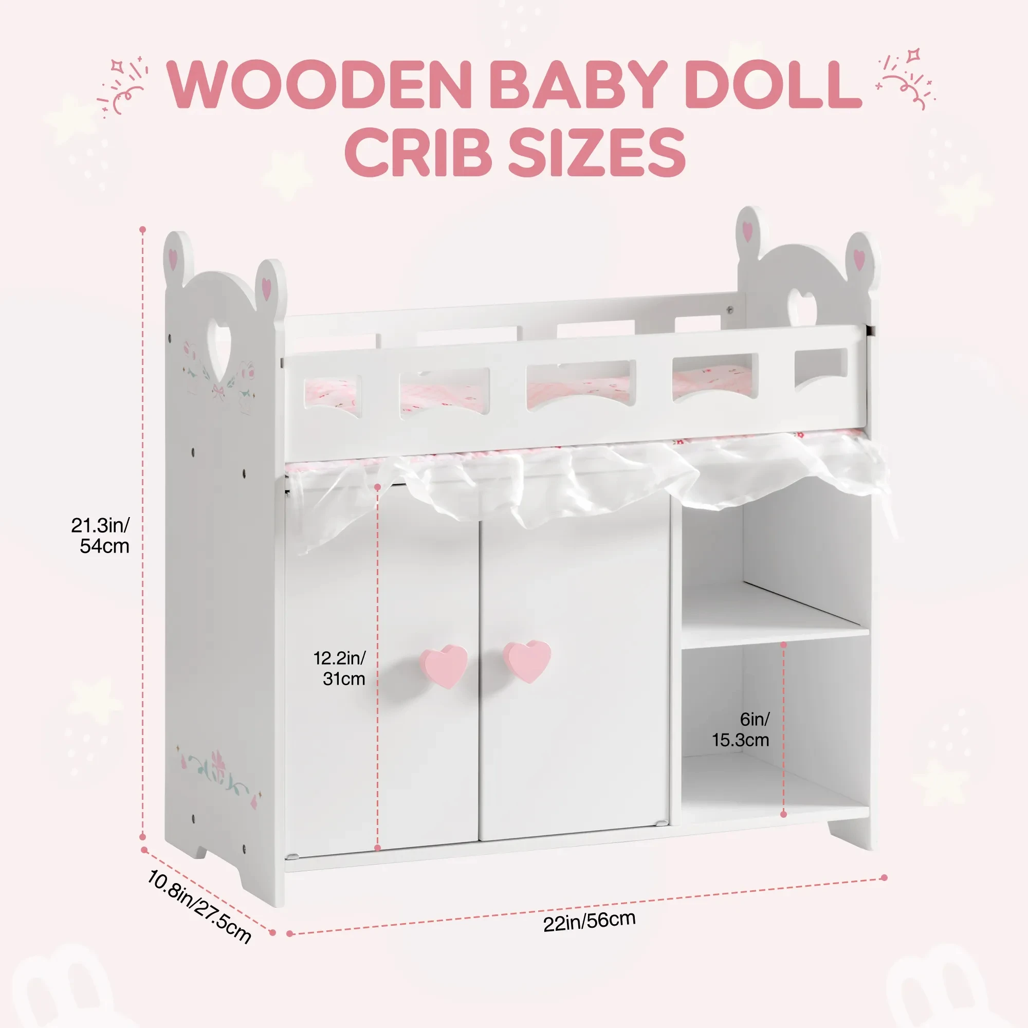 The ROBUD Wooden Doll Crib brings charm and imaginative play to any child’s room. Crafted from sturdy wood with an adorable rabbit design, this doll bed includes soft bedding and a built-in storage space to keep doll accessories neatly organized. Designed to fit dolls up to 21 inches, it’s perfect for nurturing role-play that helps develop creativity, empathy, and organization skills. Durable, safe, and beautifully designed, this doll crib makes a delightful gift for girls ages 3 and up. 🧸